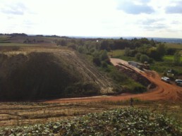 Eine unserer Schubraupen des Typs CAT D6 R war für die auf wenige cm genaue Profilierung der Oberfläche im Einsatz. Außerdem waren diverse Gräben für die Entwässerung der Oberfläche und für die Rohre und Leitungen herzustellen. Anschließend wurde die komplette Fläche wieder mit Mutterboden angedeckt.