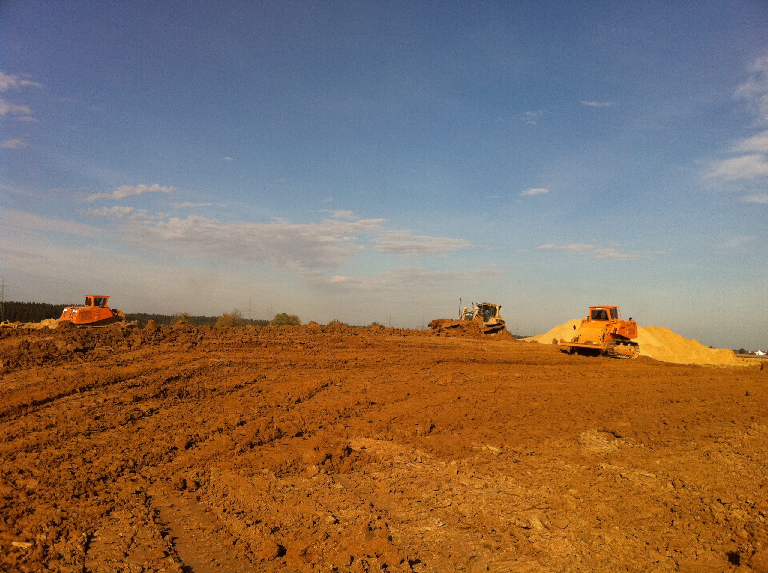 Als Vorbereitung für den Bau eines Solarparks mussten ca. 150.000 m³ in Mieten lagernden Erdaushubs abgetragen, transportiert und lagenweise auf dem gesamten knapp 60.000 m² großen Gelände flächig wieder eingebracht werden.